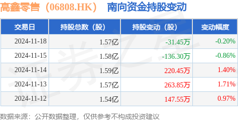 本站音问,11月18日南向资金减抓31.45万股高鑫零卖(06808.HK)。近5个交游日中,获南向资金增抓的有3天,累计净增抓464.1万股。近20个交游日中,获南向资金减抓的有10天,累计净减抓2106.7万股。兑现当今,南向资金抓有高鑫零卖(06808.HK)1.57亿股澳门银银河官方网app(中国)官方网站,占公司已刊行平凡股的1.64%。